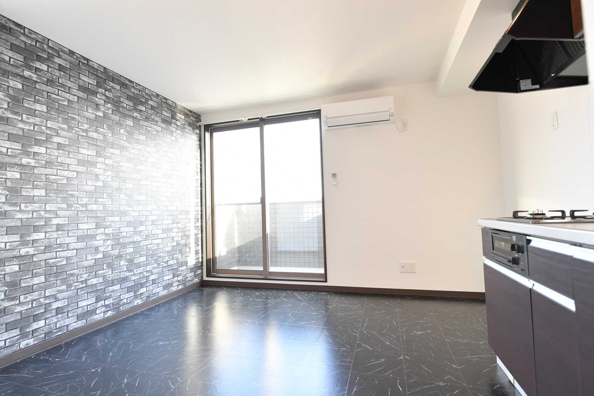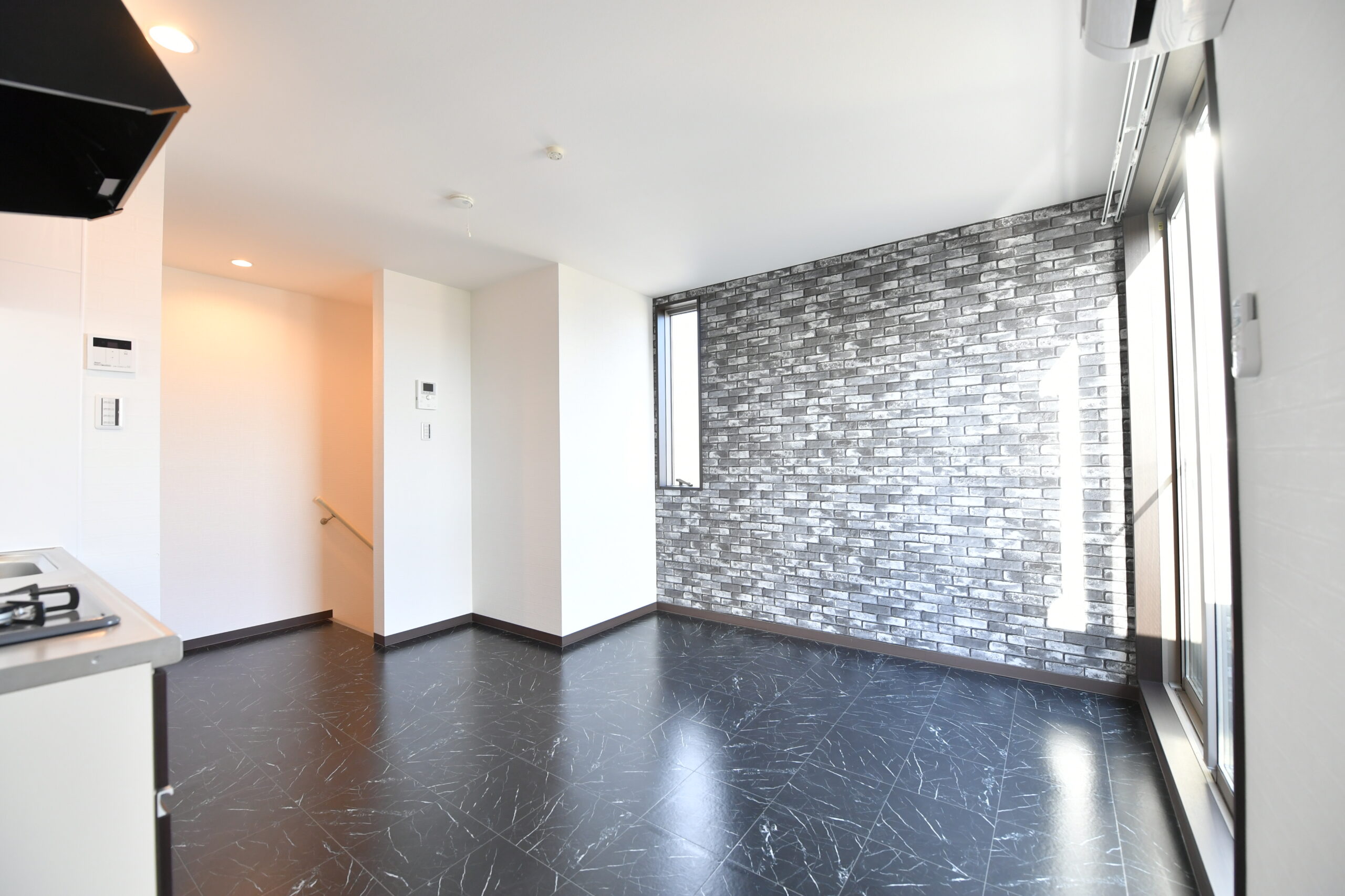 居室はコンクリート打ち放し調のデザインを採用。30~40代男性の一人暮らしにも似合う無骨なデザインが魅力です。