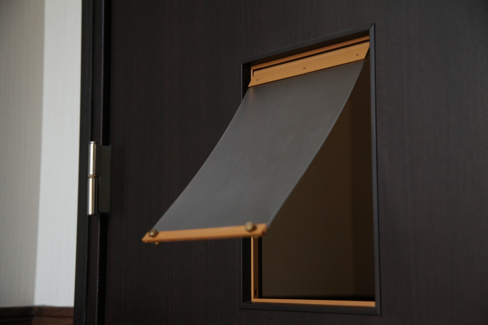 ドアの下部にはネコ用の小さなドアが付いています。ネコはこのドアから自由に行ったりきたり。入ってほしくない部屋にはストッパーをかけておけば安心です。